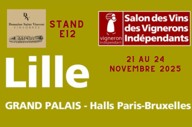 Le Domaine Saint Vincent participera au salon des Vignerons Indépendants de France de Lille Grand Palais du 21 au 24 Novembre 2025.